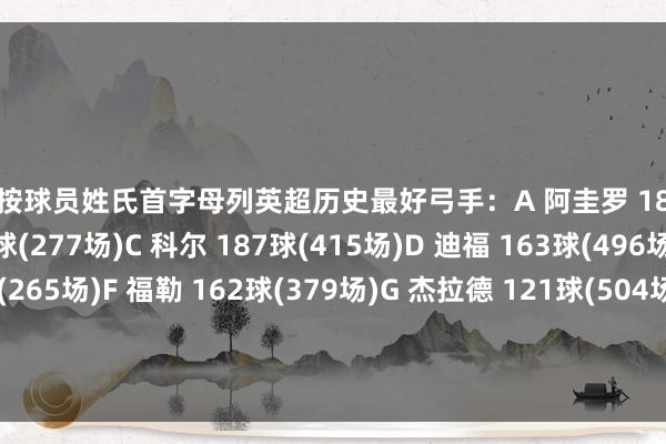 德转按球员姓氏首字母列英超历史最好弓手:A 阿圭罗 184球(275场)B 本特 106球(277场)C 科尔 187球(415场)D 迪福 163球(496场)E 尤厄尔 55球(265场)F 福勒 162球(379场)G 杰拉德 121球(504场)H 亨利 175球(258场)I 英斯 72球(240场)J 热苏斯 76球(229场)K 凯恩 213球(320场)L 兰帕德 177球(611