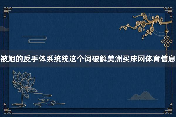被她的反手体系统统这个词破解美洲买球网体育信息