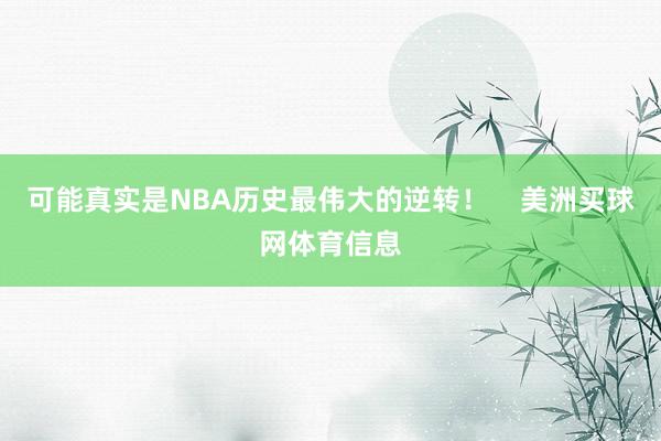 可能真实是NBA历史最伟大的逆转! 美洲买球网体育信息