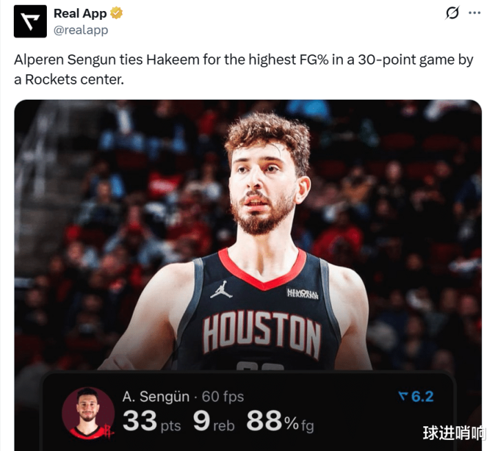 全场出战33分41秒,半场7中7,全场17中15高效轰下全场最高的33分,外加9板6助1抢断,天然出现了5次纰谬和5次犯规,但申京在蹙迫端的高效推崇依旧可圈可点。