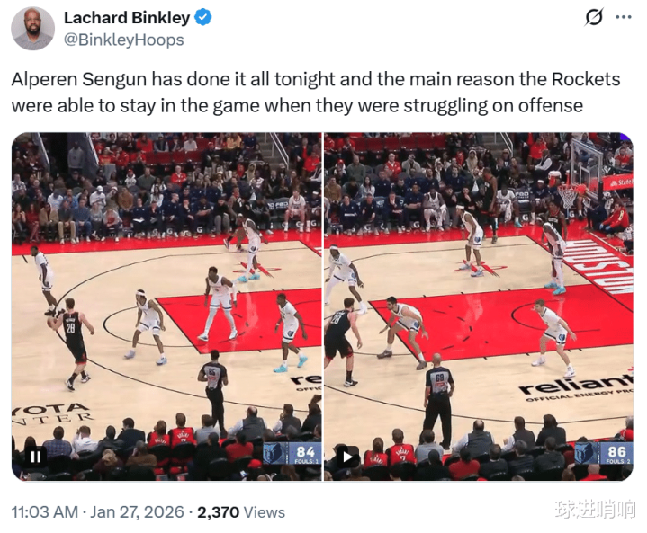 面临申京这么的推崇,火箭记者Lachard Binkley连发数条推特赞叹申京。