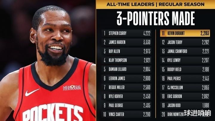 全场杜兰特24中11,三分9中4,拿下33分8板2助1盖帽,凭借这么的推崇,杜兰特生计三分掷中总和晋升至2290个,生效追平卡特比肩NBA历史第十。