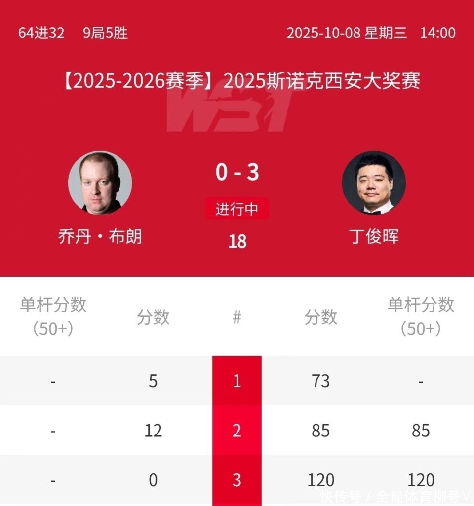 北京时刻10月8日音讯体育录像/图片,2025年斯诺克西安大奖赛崇拜开杆。第二个比赛日的一场中焦点比赛中,“中国一哥”丁俊晖迎战威尔士公开赛冠军乔丹-布朗。前四局截止后,丁俊晖以4-0跳动敌手并取得4个赛点。另外,他在第三局果真轰出单杆满分147分。